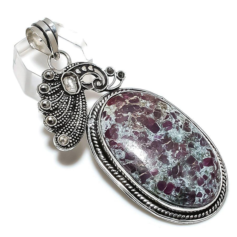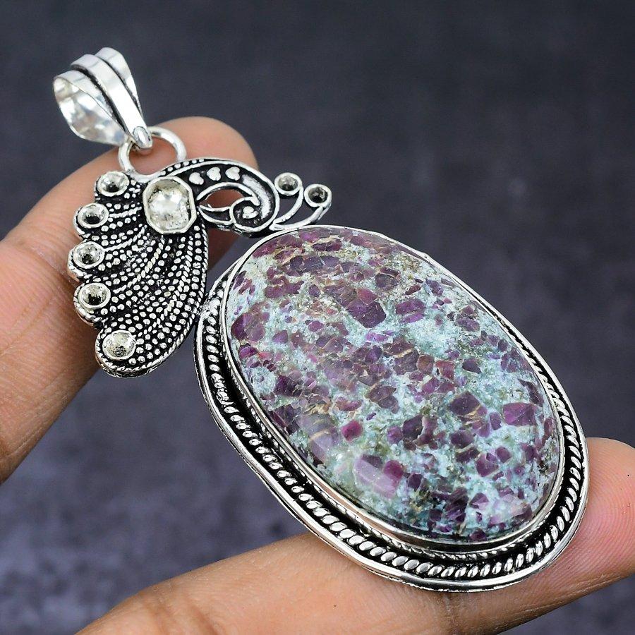 Натуральный рубин, фуксит, драгоценный камень 925 пробы, серебряный ювелирный кулон 2,88 дюйма, Y3y16