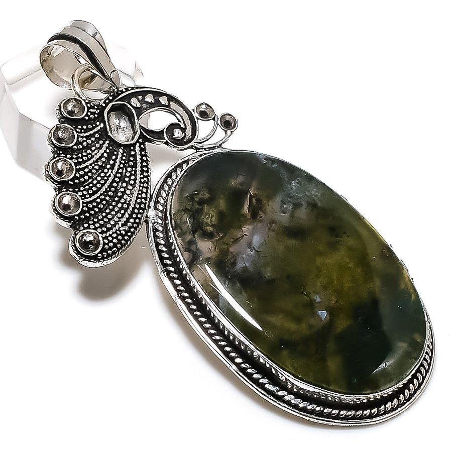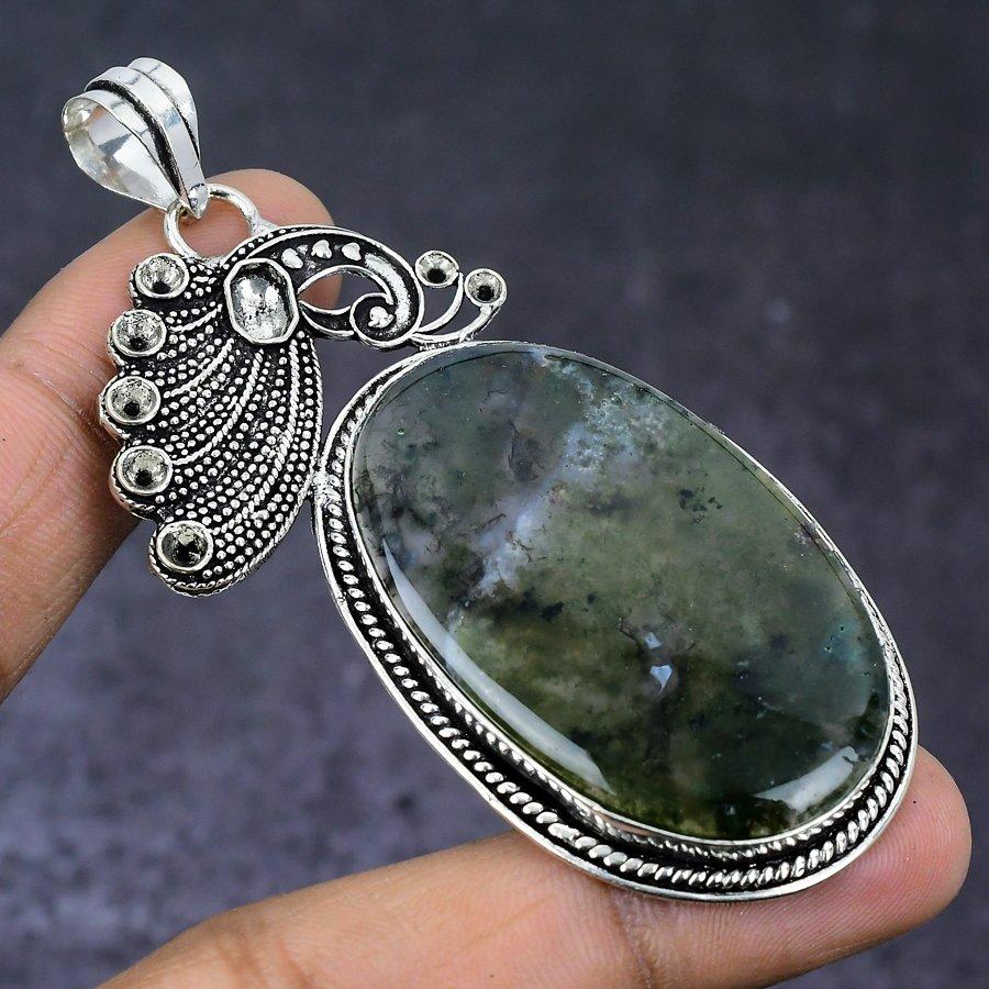 Подвеска из натурального индийского мохового агата из серебра 925 пробы 3,03 дюйма P4e99