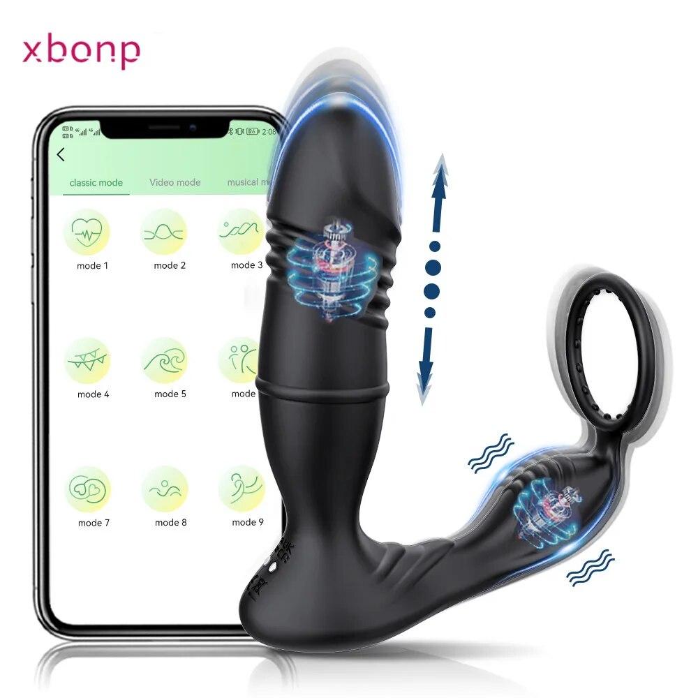 Анальная пробка с управлением через приложение, Bluetooth, толкающий вибратор, массажер простаты, задержка эякуляции, стопорное кольцо, Анальная пробка, секс-игрушки для мужчин