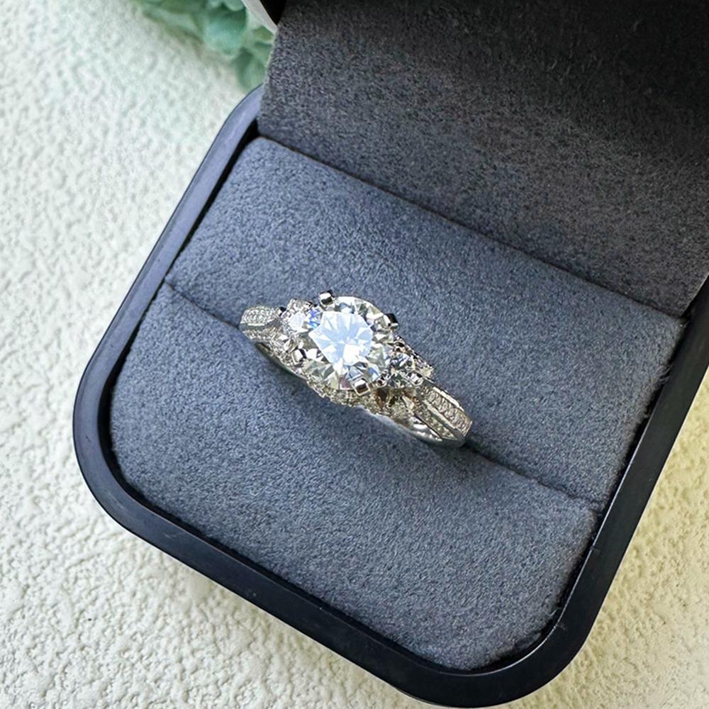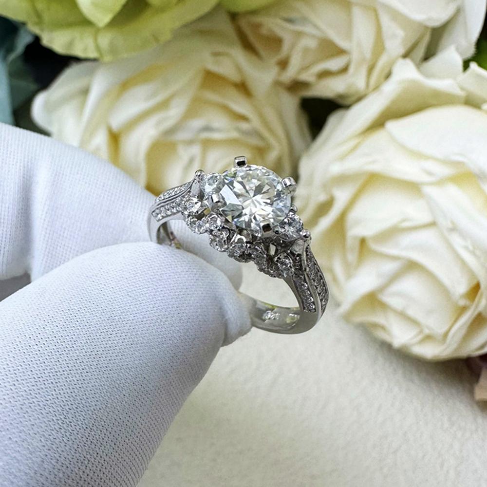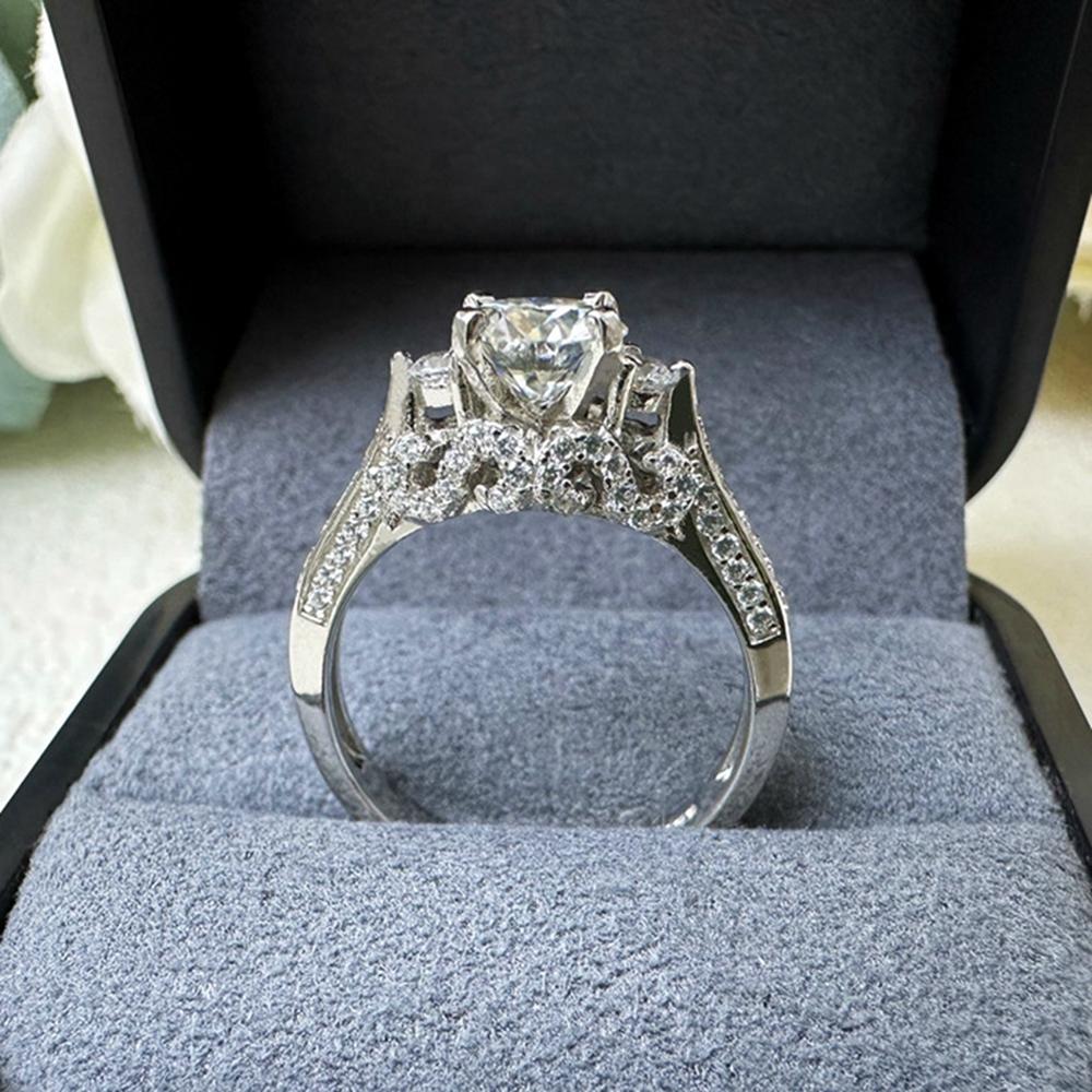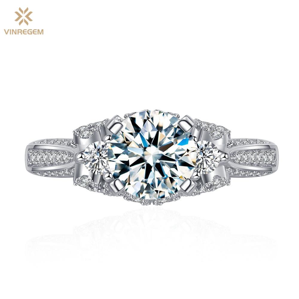 Vinregem Роскошное кольцо из 100% стерлингового серебра 925 пробы 3EX VVS1 D, цвет круглой огранки, 6,5 мм, 1 карат, настоящее кольцо с муассанитом и бриллиантами, свадебное обручальное ювелирное изделие, подарки