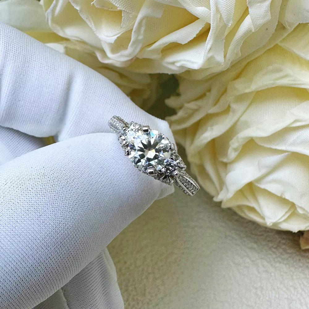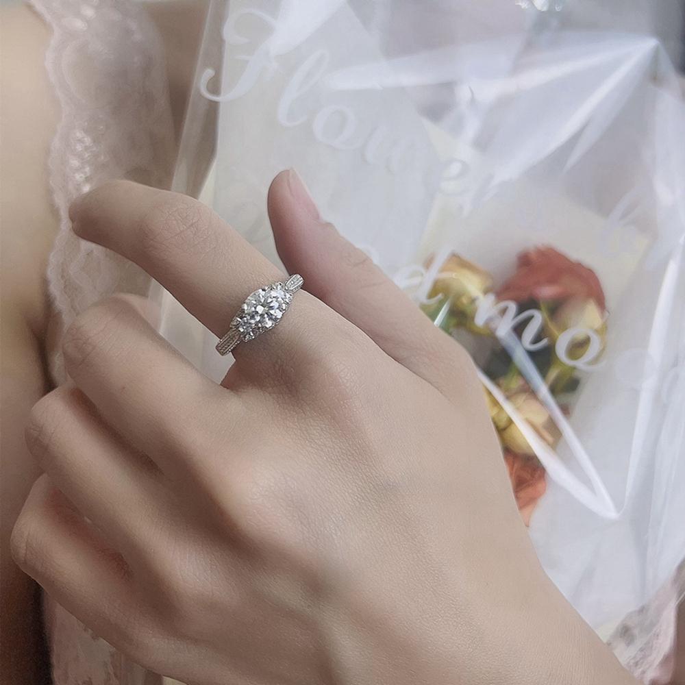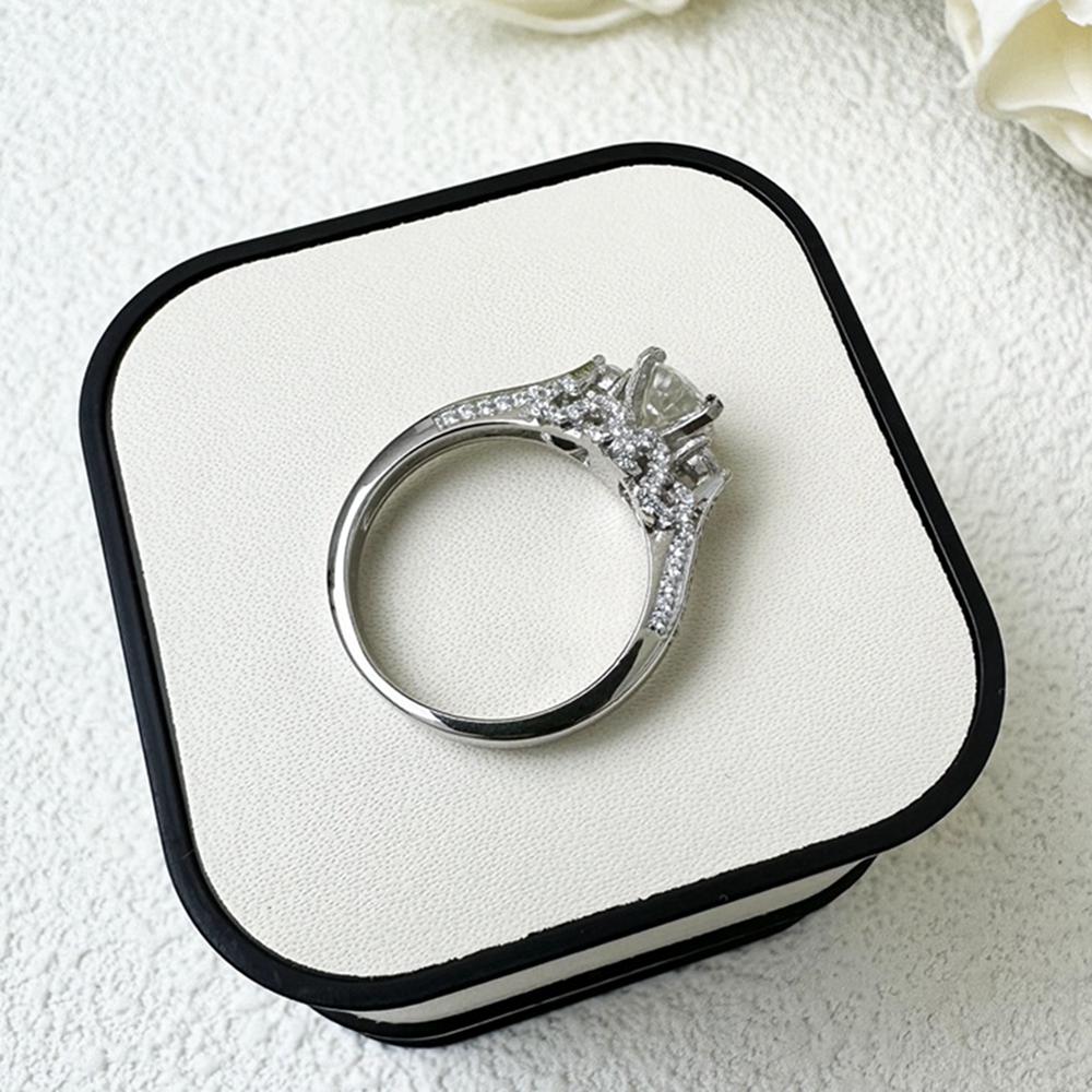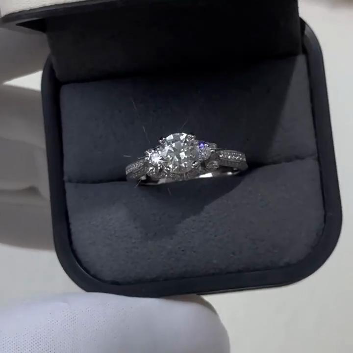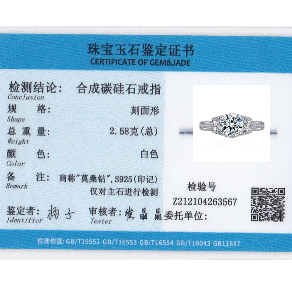 Vinregem Роскошное кольцо из 100% стерлингового серебра 925 пробы 3EX VVS1 D, цвет круглой огранки, 6,5 мм, 1 карат, настоящее кольцо с муассанитом и бриллиантами, свадебное обручальное ювелирное изделие, подарки