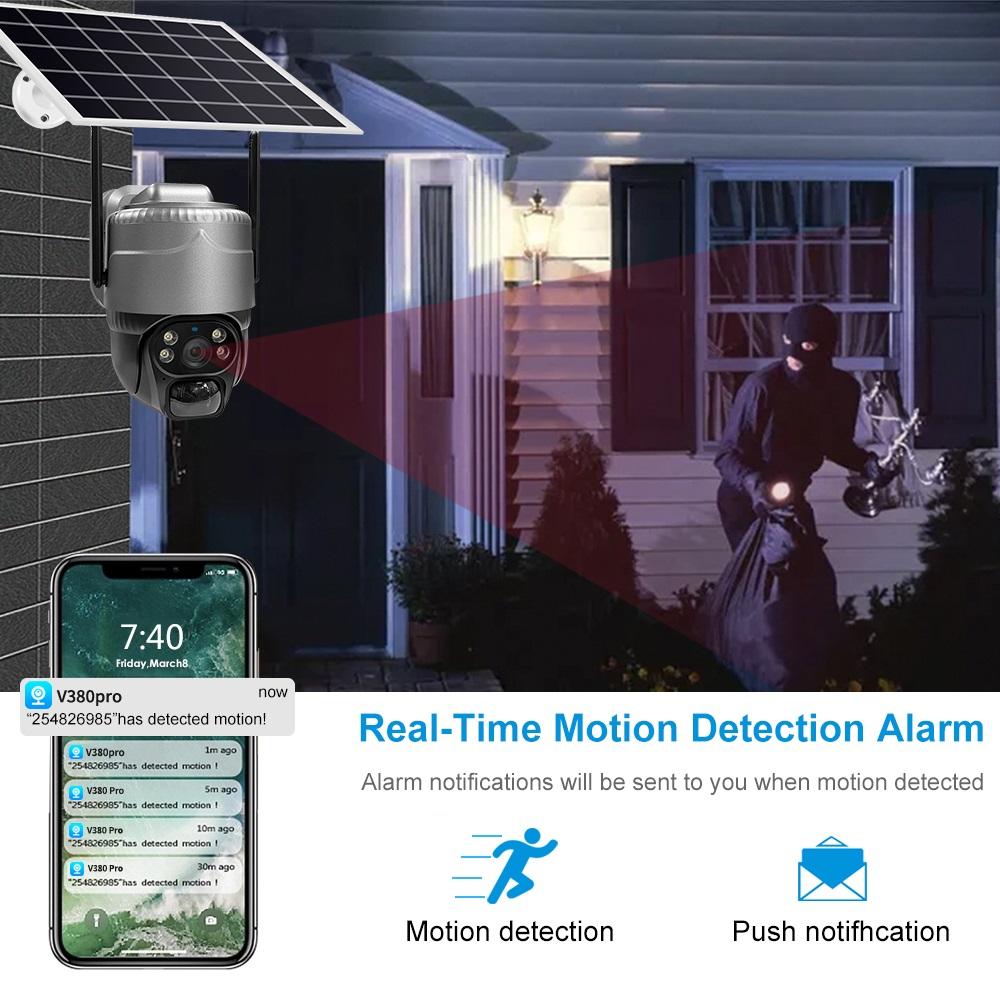 Солнечная HD-камера с низким энергопотреблением, одинарный/двойной объектив, полноцветная камера ночного видения, WIFI/4G, камера безопасности с дистанционным мониторингом