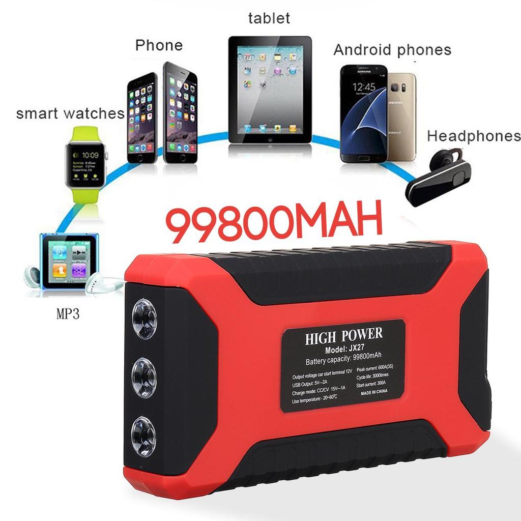 Автомобильный пусковое устройство Quick Start Power Bank 99800 мАч Стартовое зарядное устройство для 12 В 2 А Стартовое зарядное устройство для автомобилей Аварийный бустерный аккумулятор со светодиодной подсветкой