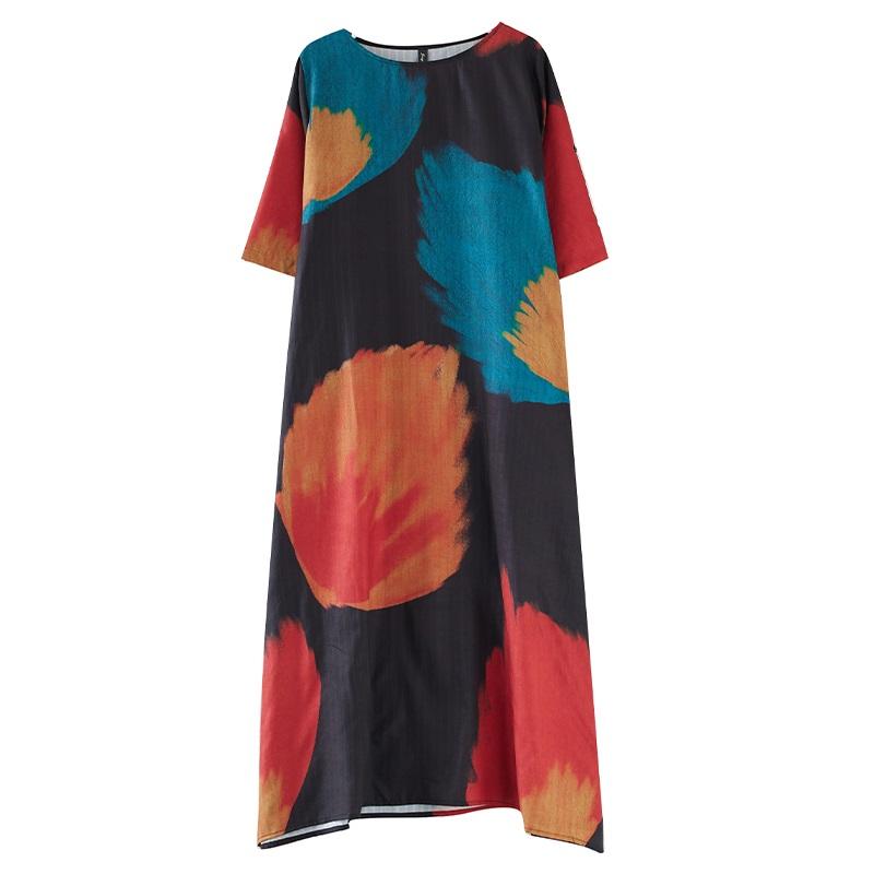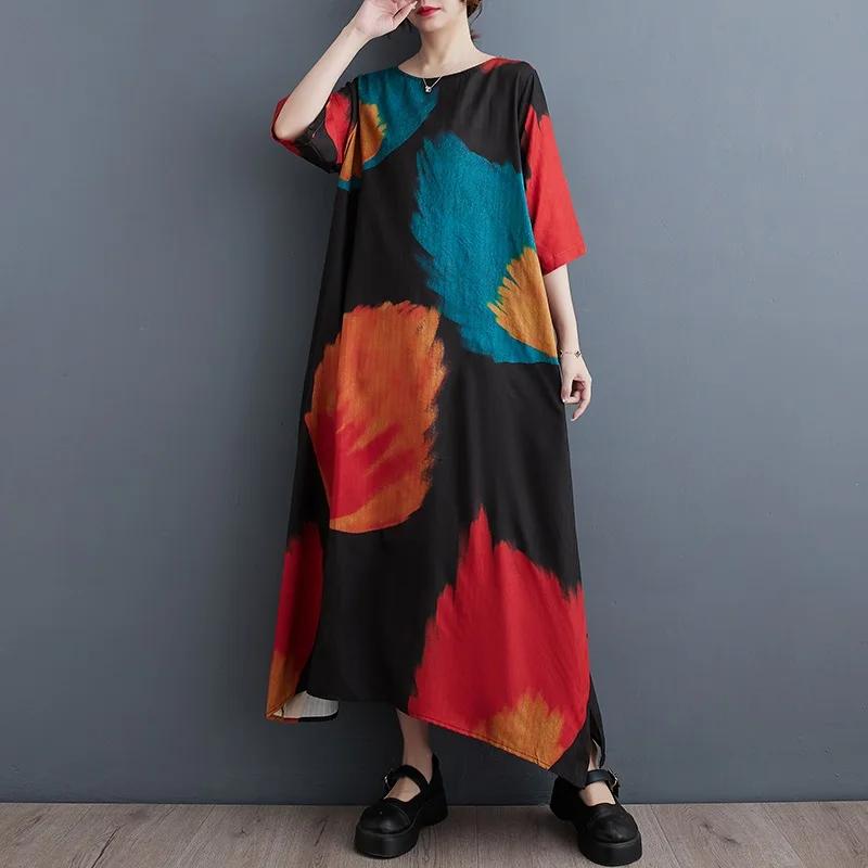 Новое винтажное платье с цветочным принтом больших размеров с коротким рукавом для женщин, повседневное свободное длинное летнее платье