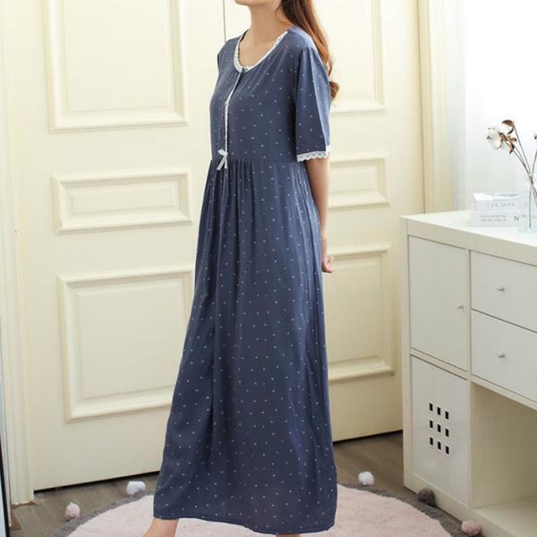 Новая летняя ночная рубашка, женская хлопковая дышащая ночная рубашка в горошек с короткими рукавами, домашняя одежда, женская одежда для сна принцессы, женская одежда для сна