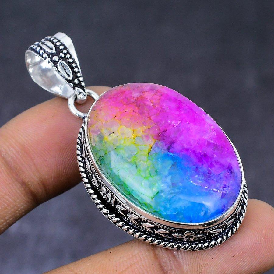 Подвеска из натурального радужного солнечного кварца 925 пробы из серебра 2,09 дюйма R1A20