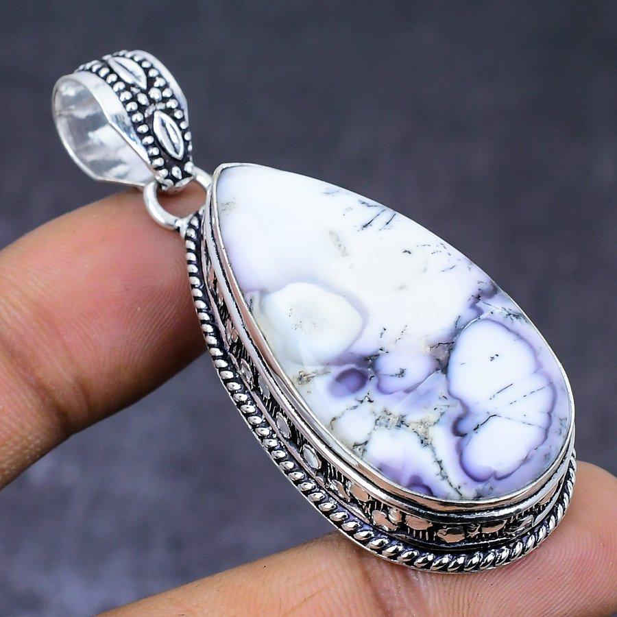 Натуральный дендритовый опал, драгоценный камень 925 пробы, серебряный ювелирный кулон 2,25 дюйма K7M19