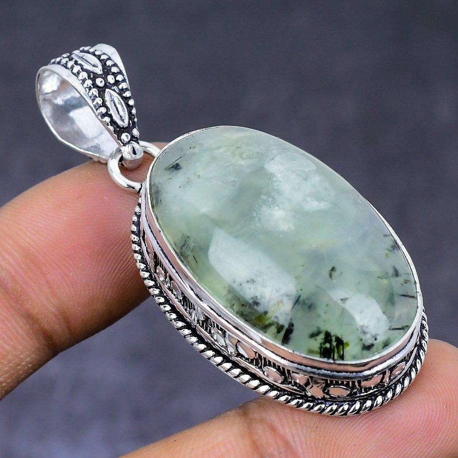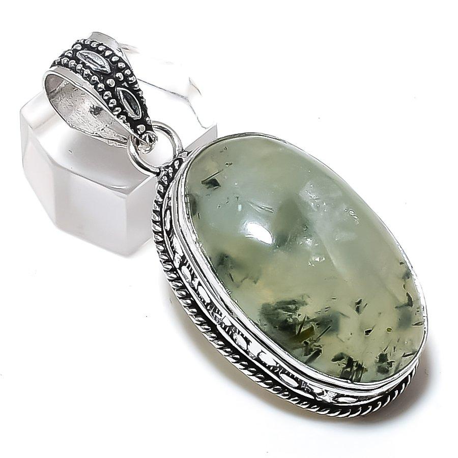 Ювелирный кулон ручной работы из натурального серебра 925 пробы с драгоценным камнем пренит 2,05 дюйма K4O03