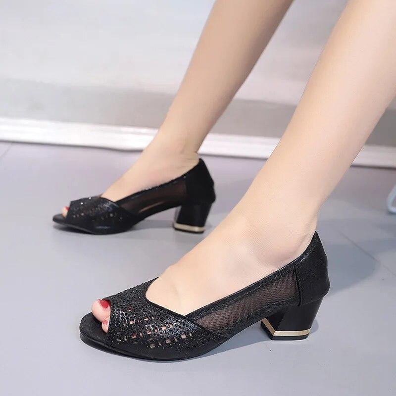 Женские сандалии в сетку со стразами размера плюс 43, новинка 2023 года, летние пикантные модные офисные женские сандалии на высоком каблуке с открытым носком — купить товар онлайн с бесплатной доставкой по всему миру!