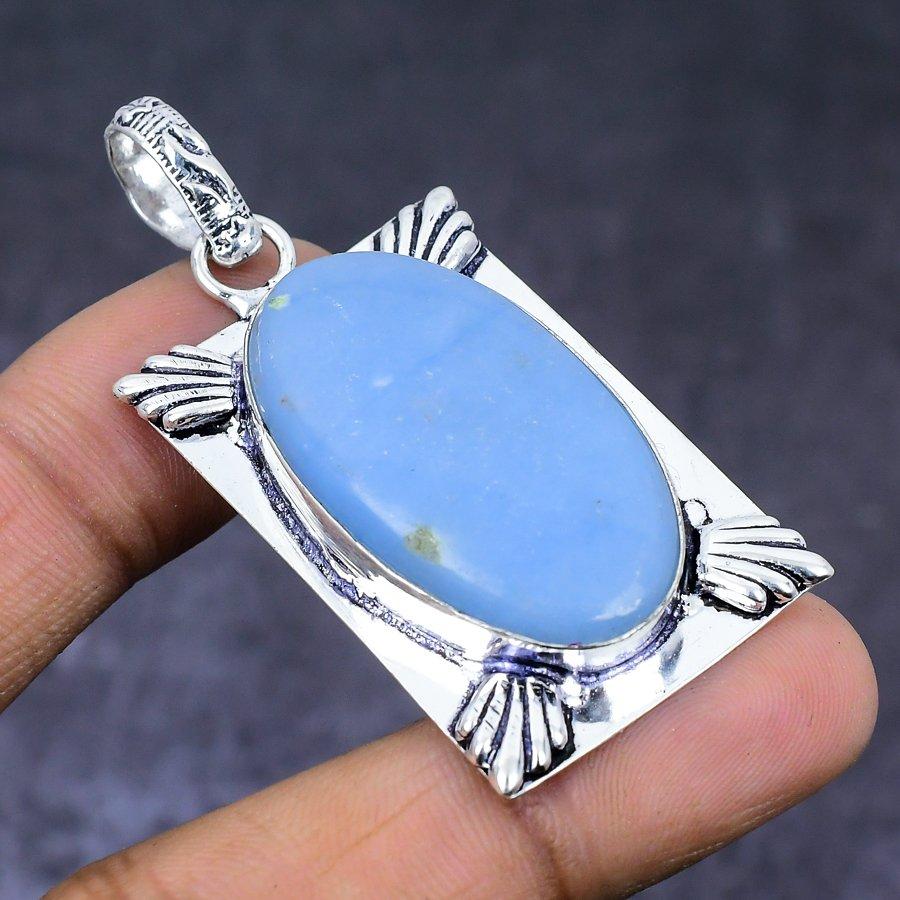 Натуральный камень Ангелит Драгоценный камень Ювелирное изделие из серебра 925 пробы Кулон 2.29" M0c96