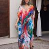 YYFS Женская мода отпуск лето весна абстрактный узор принт рукава 1/2 с v-образным вырезом повседневные платья