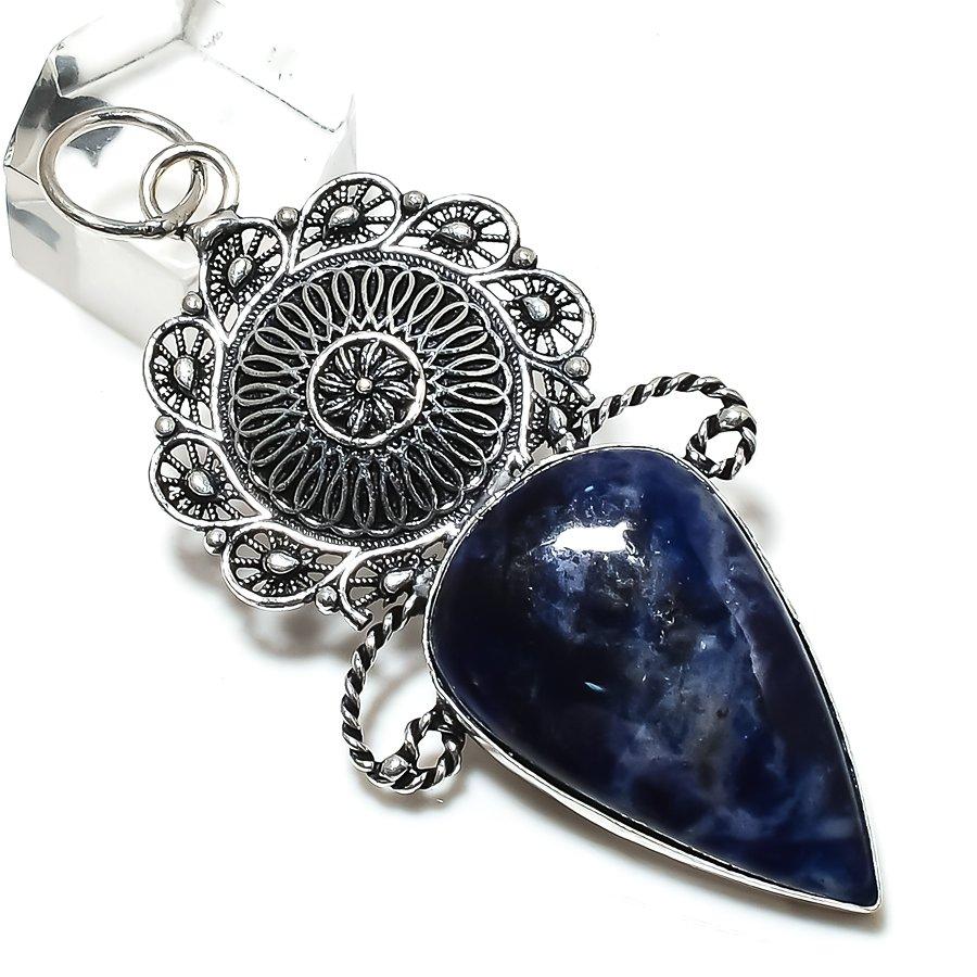 Подвеска из натурального содалита, стерлингового серебра 925 пробы, ручная работа, 2,96 дюйма, Q5B43 — купить товар онлайн с бесплатной доставкой по всему миру!