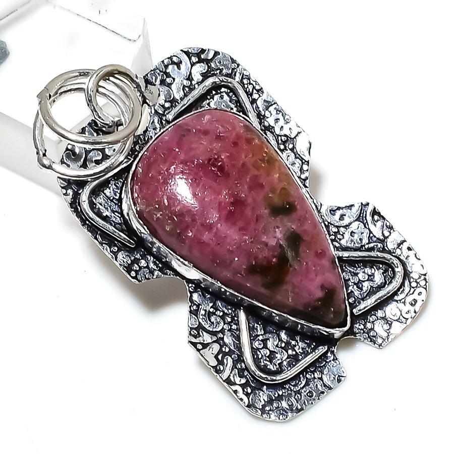 Подвеска из стерлингового серебра 925 пробы с натуральным родонитом ручной работы 1,97 дюйма