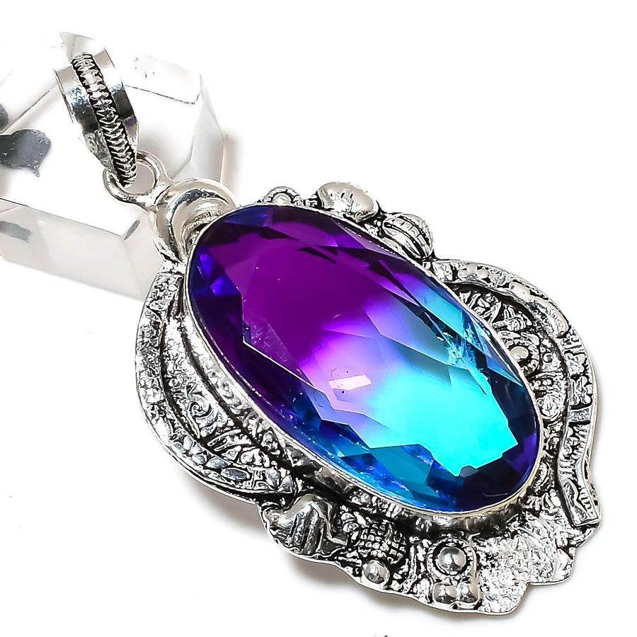 Подвеска из стерлингового серебра 925 пробы с натуральным двухцветным турмалином ручной работы 2,56 дюйма