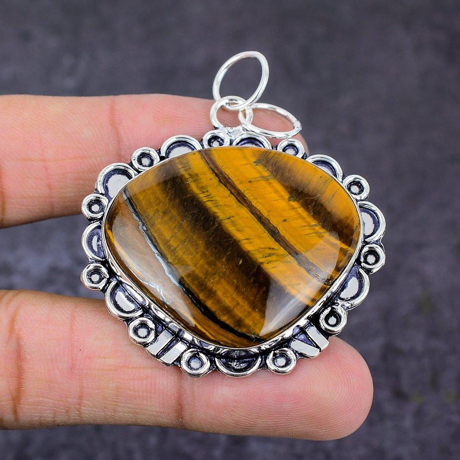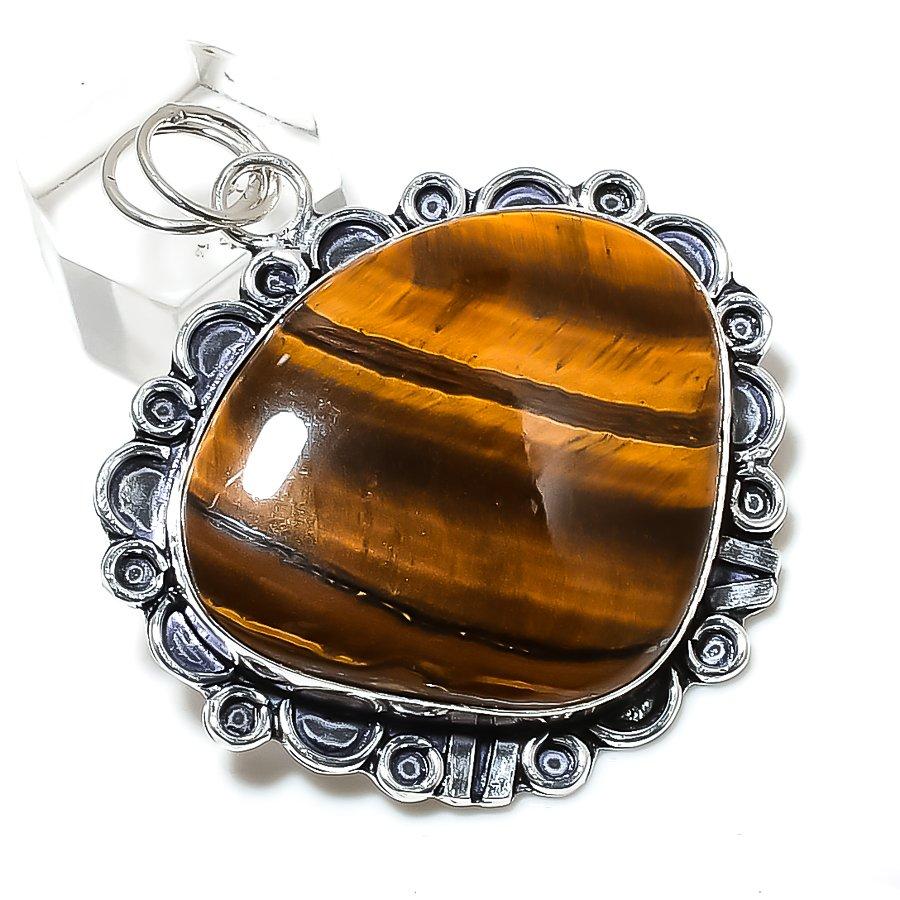 Подарочный кулон ручной работы из стерлингового серебра 925 пробы с натуральным тигровым глазом размером 2,21 дюйма