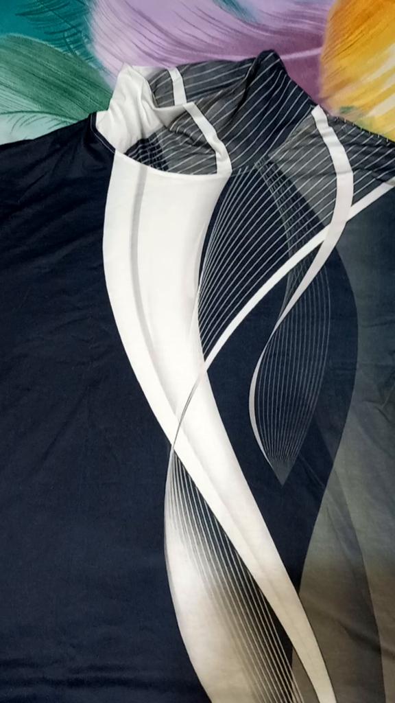 На российский 52 размер, рост168 хорошо села, в самый раз. Цвета яркие, как на картинке. К телу приятная, по ощущению внутренняя поверхность мягкая - хлопок, а наружная сторона - глянцевая. Воротник стойка. Длина как на картинке, закрывает ягодицы. Выглядит очень эффектно! Я очень довольна. Надеюсь, после стирки не испортится.