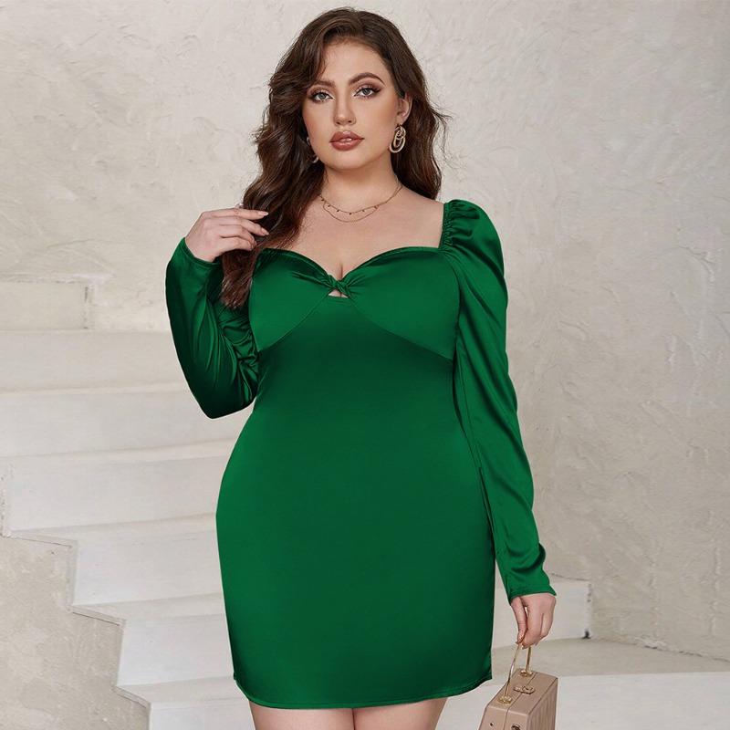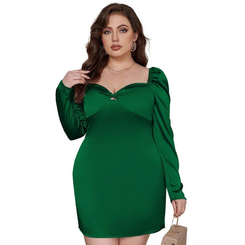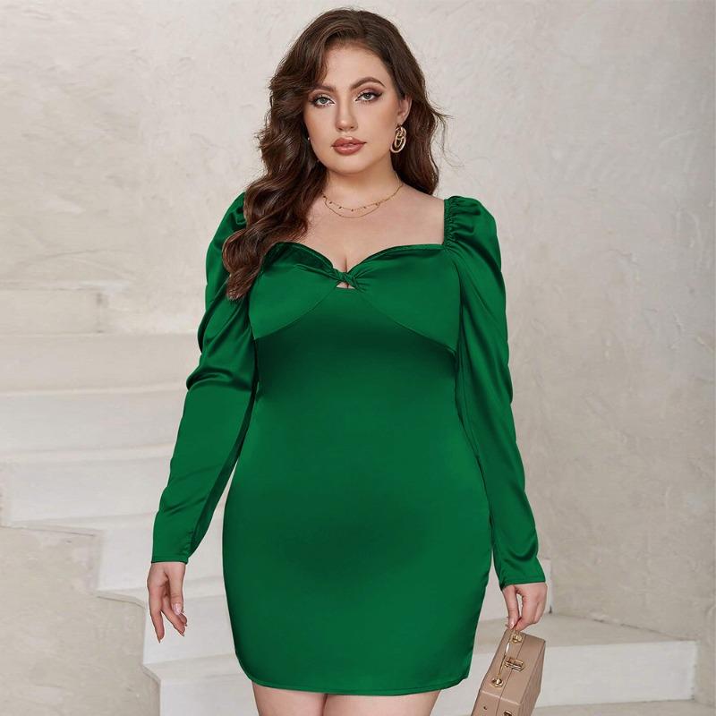 Повседневные узкие платья с длинными рукавами для женщин, однотонное платье, женское зеленое платье с квадратным вырезом, платье больших размеров, платье с высокой талией, модное пляжное платье