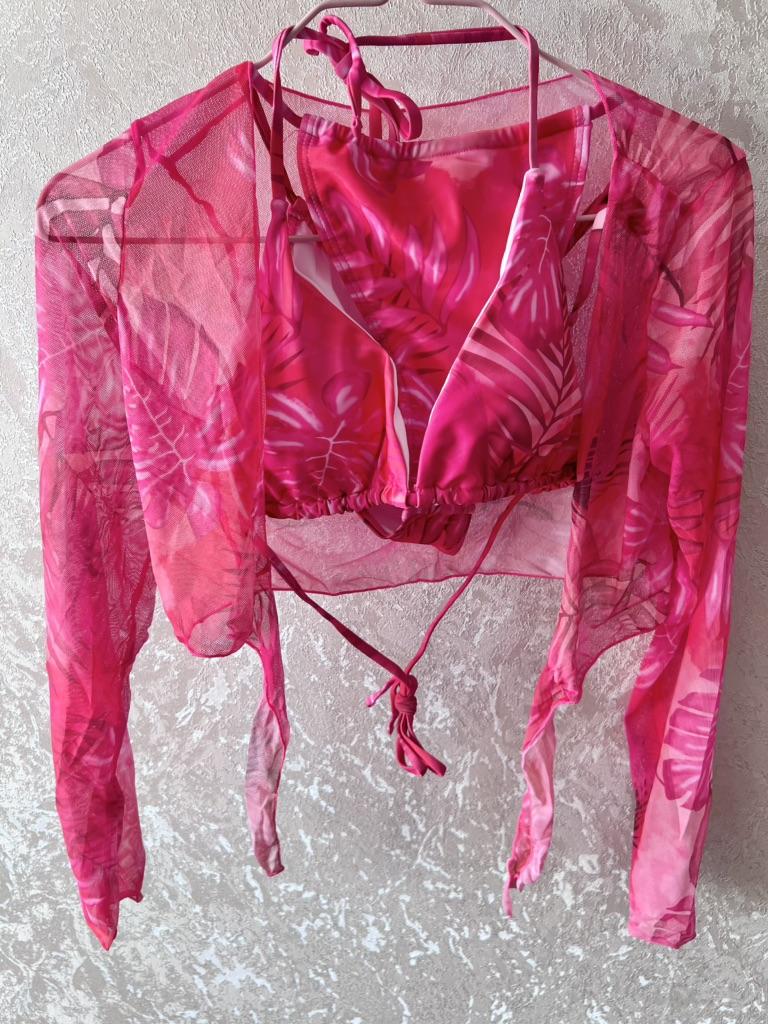 Купальник женский, разделенный комплект из четырех предметов, высокая талия, длинный рукав, верхняя рубашка, бикини с кулиской и принтом