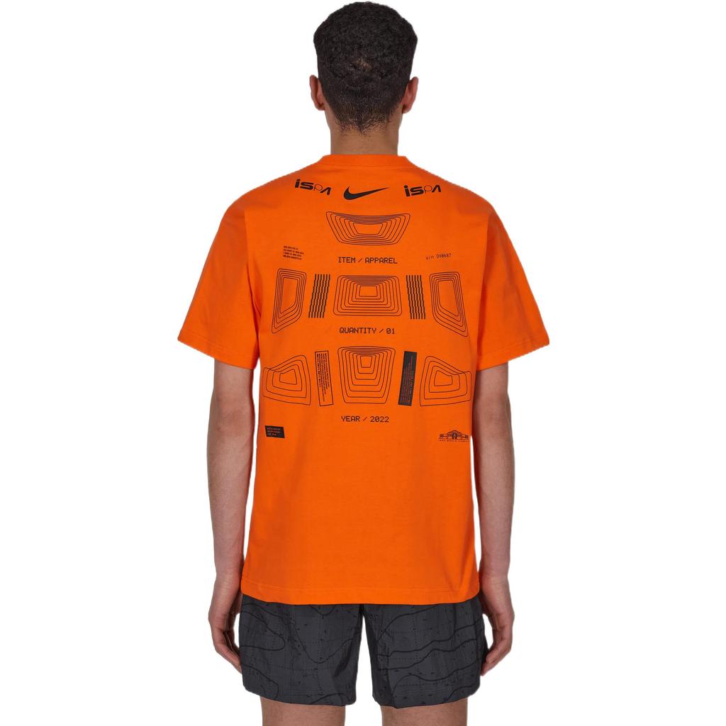 Nike Серия ISPA, простая повседневная футболка с буквенным логотипом и круглым вырезом, с короткими рукавами, мужские топы, оранжевый DV0687-817