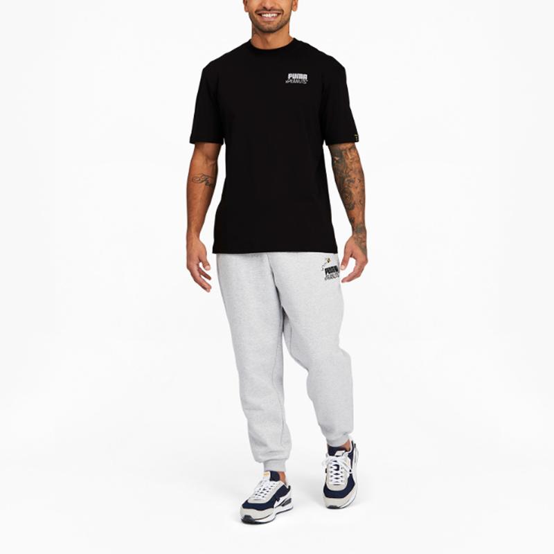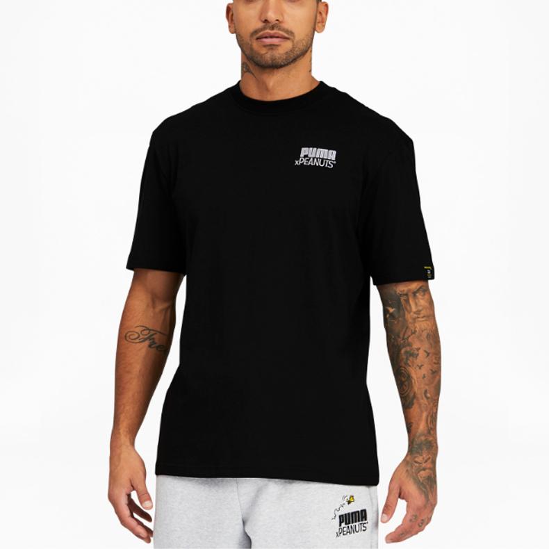 Puma Спортивная футболка с коротким рукавом с мультяшным принтом «Арахис» Мужские топы Черные 530616-01