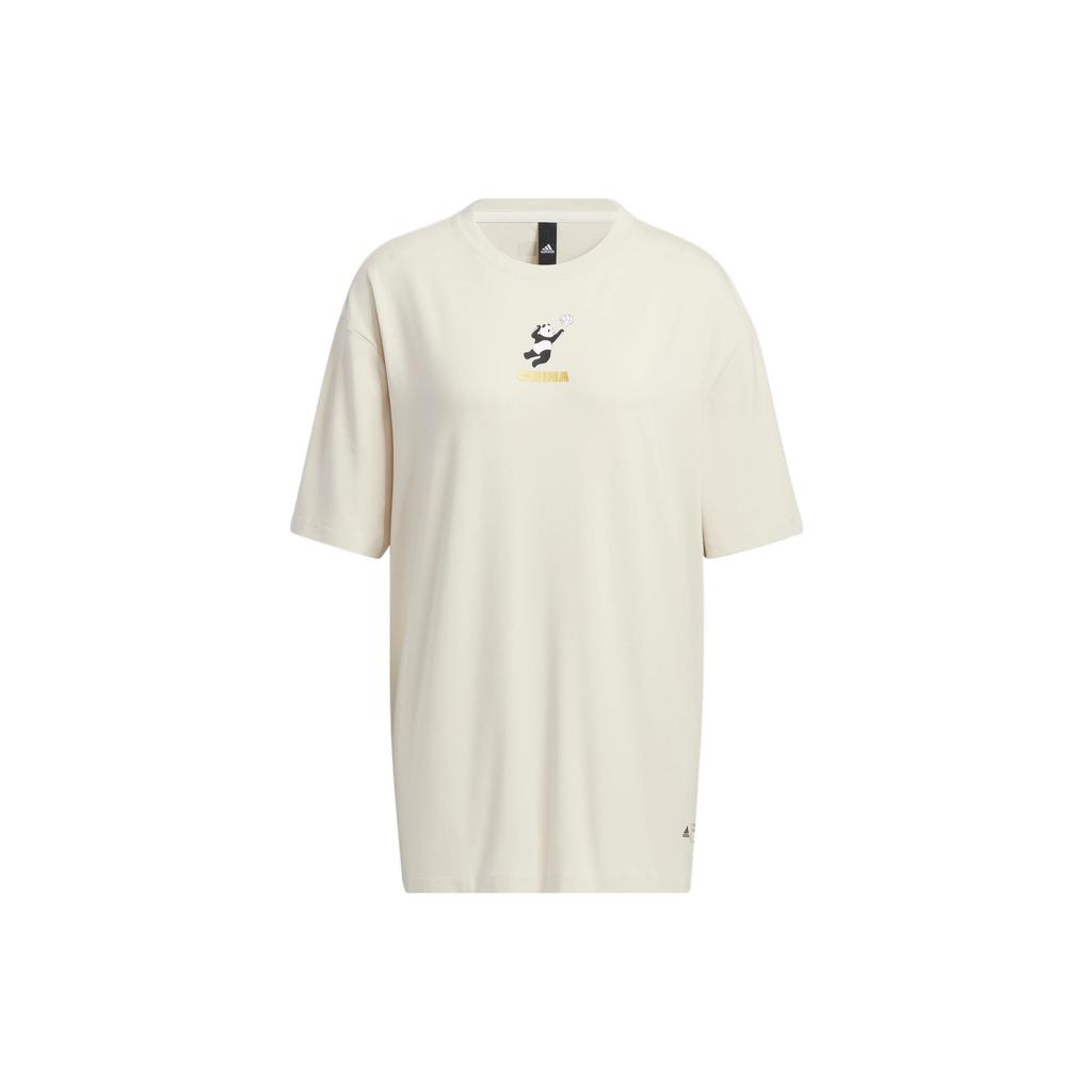 Adidas Сплошной цвет с принтом панды, футболка с круглым вырезом и короткими рукавами, женские топы, терракотово-коричневый HT6906
