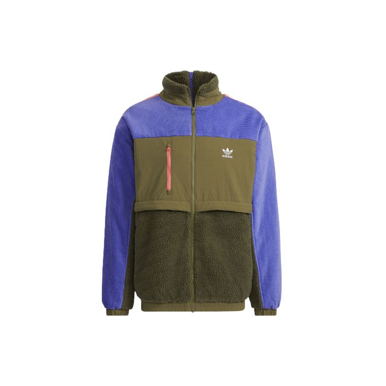 Adidas Оригинальная куртка с высоким воротником-трилистником и цветными блоками на молнии с логотипом, мужская верхняя одежда темно-оливково-зеленого цвета HE6614