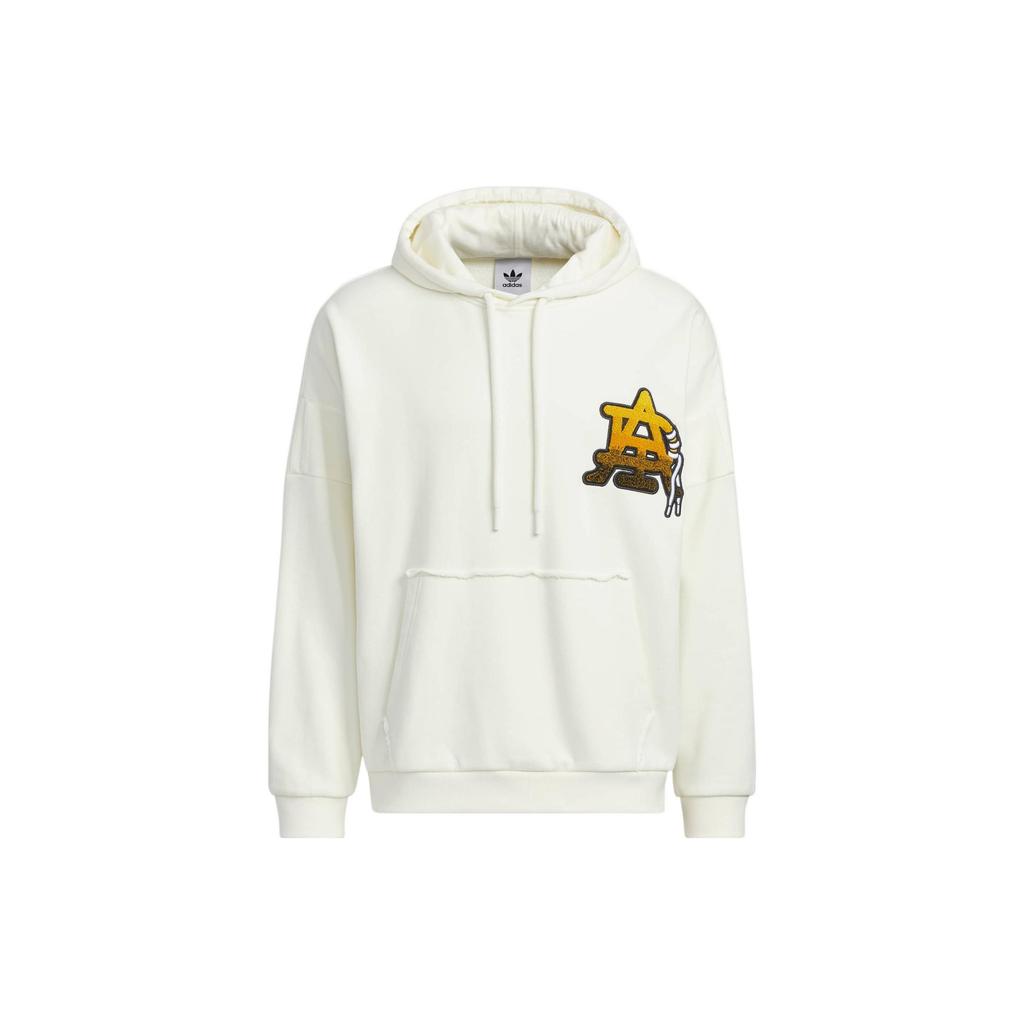 Adidas Logo Print Drawstring Hooded Long Sleeve Sweatshirt Men Tops White HS7287 — купить товар онлайн с бесплатной доставкой по всему миру!