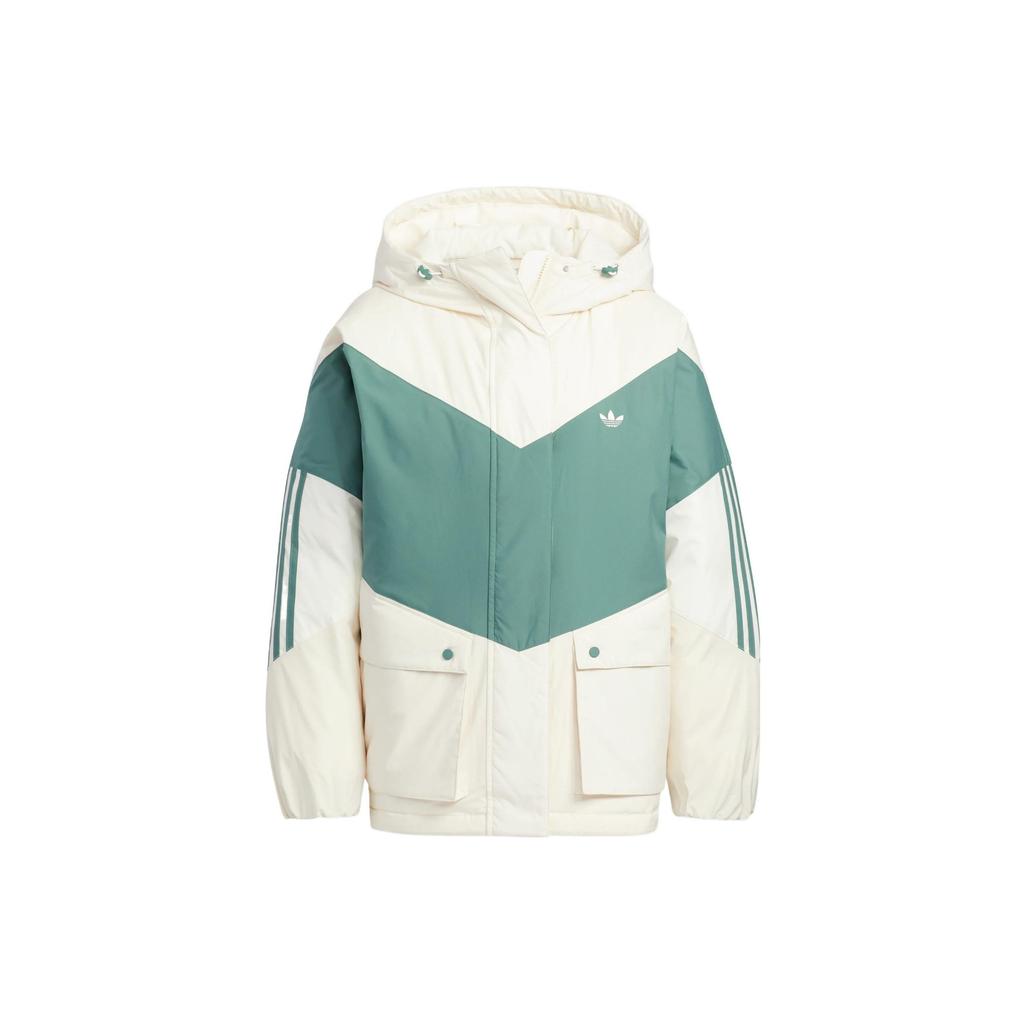 Adidas Оригинальный трилистник с цветными блоками, пуховик с капюшоном и принтом логотипа бренда, женская верхняя одежда, белый, зеленый, HS9518
