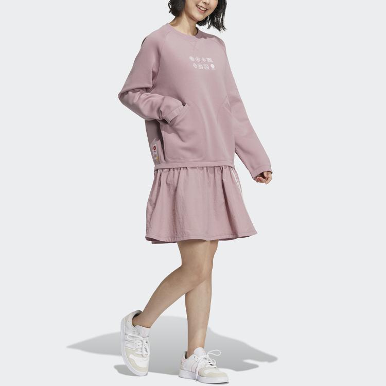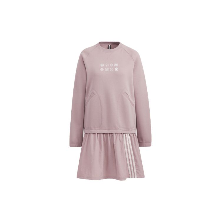Adidas Neo CNY Спортивное платье трапециевидной формы с длинным рукавом с принтом Женское платье Фиолетовый Розовый HM9884