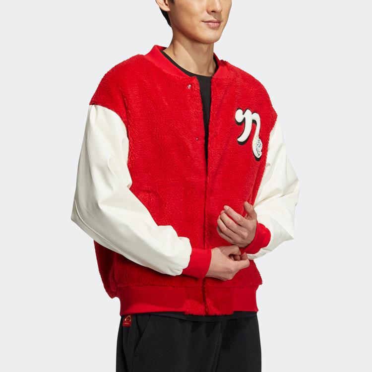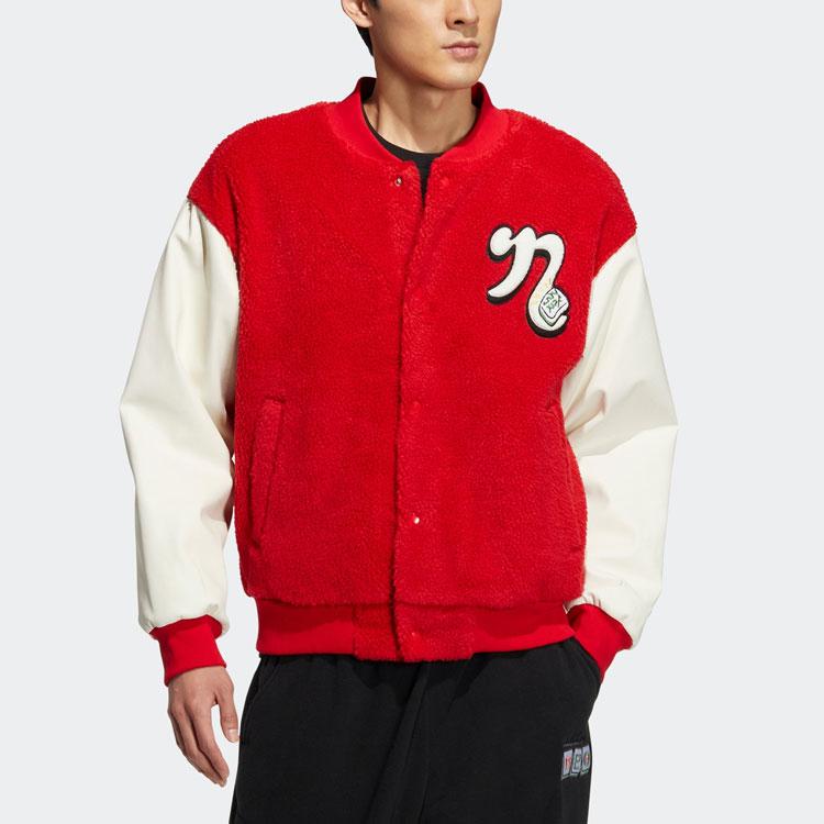 Adidas Нео флисовая бейсбольная куртка с буквенным принтом, унисекс, верхняя одежда, красный IA6902