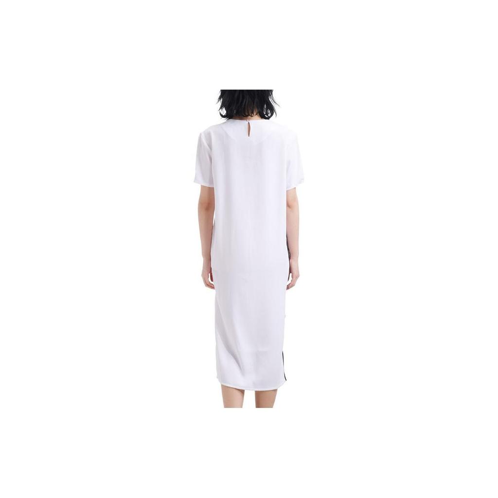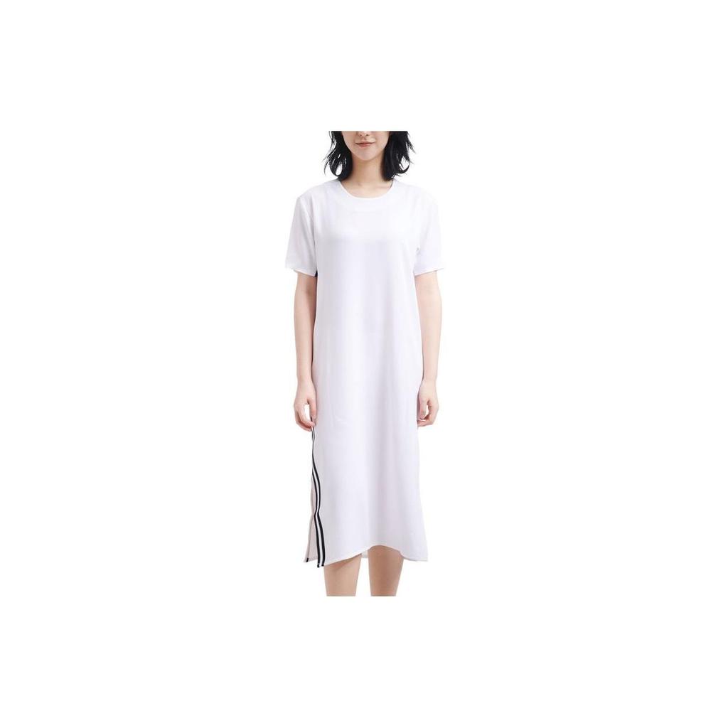 Adidas Длинное платье-футболка в полоску с трилистником Originals, женское платье, белое DU7266