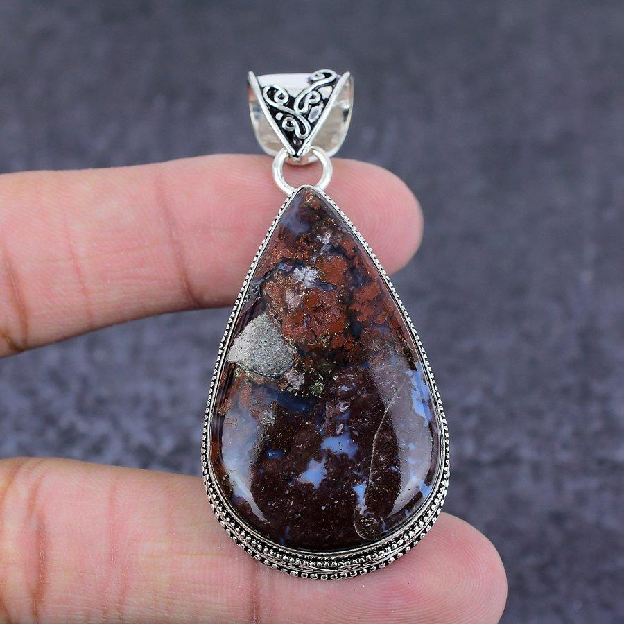 Подвеска ручной работы из стерлингового серебра 925 пробы с натуральным болдер опалом 2,52 дюйма