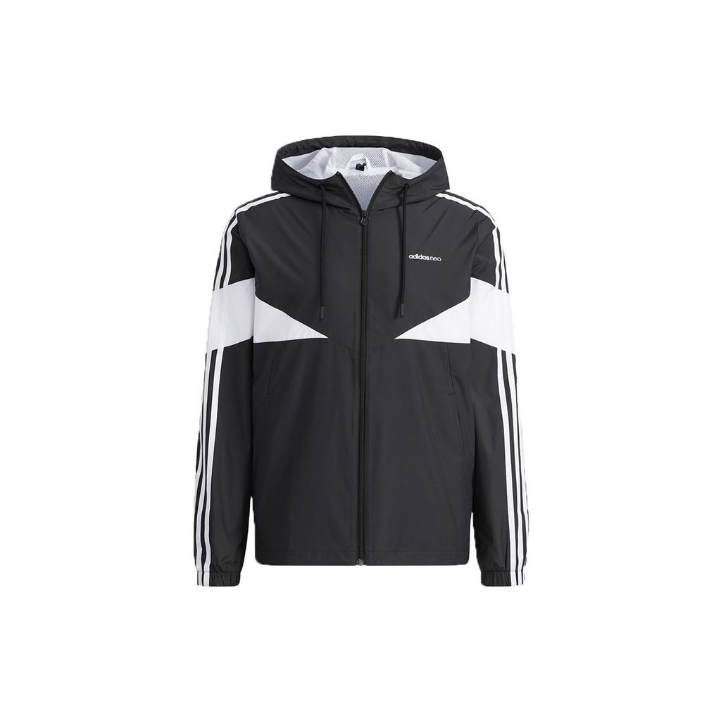 Adidas Neo Icons 3-полосная ветровка Повседневная куртка с капюшоном Мужская верхняя одежда Черный H14228