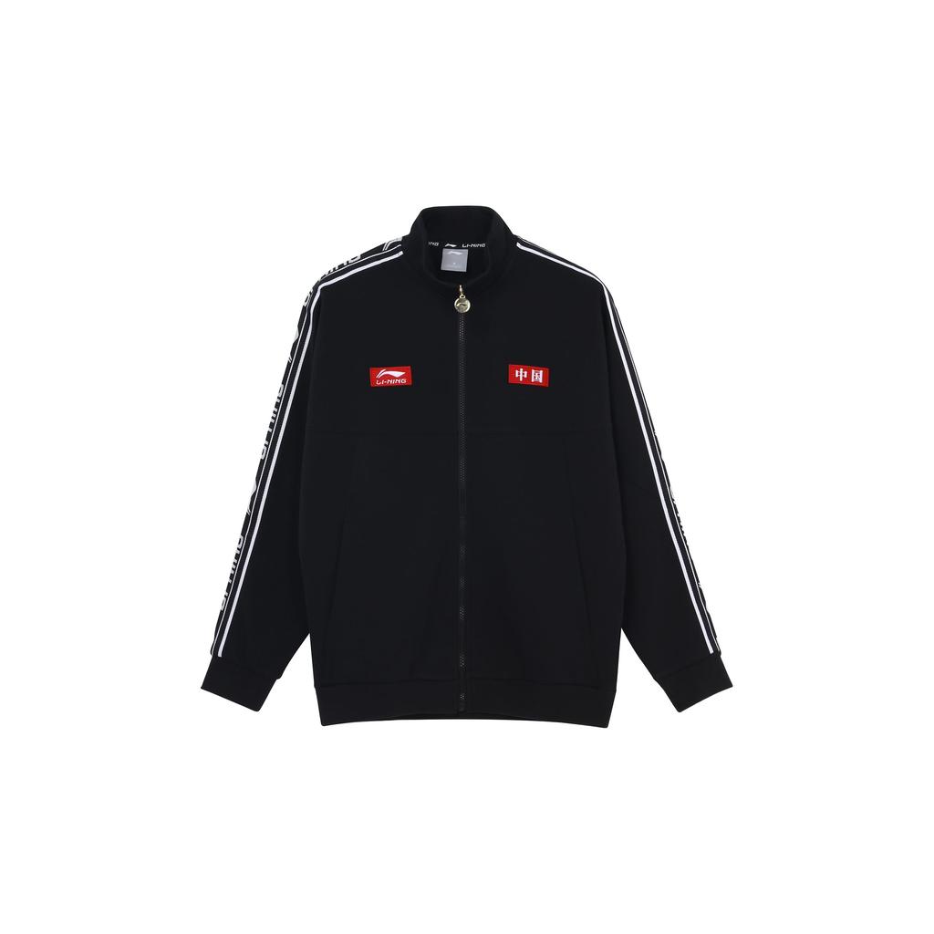 Li-Ning Футбольная серия с вышитым логотипом и воротником-стойкой на молнии, мужская верхняя одежда, черная AFDS433-1