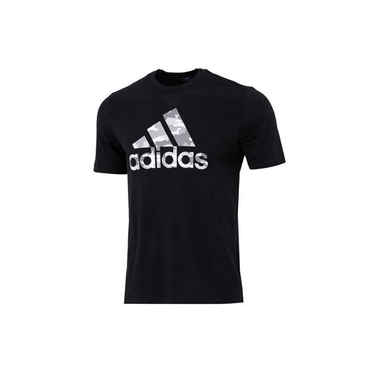 Adidas Спортивная футболка с круглым вырезом и принтом камуфляжного логотипа, мужские топы, черные HE2370