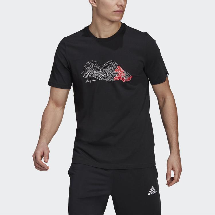 Adidas X Disney Collab M Dsny Ftbl Fun Print Спортивная футболка с круглым вырезом с короткими рукавами Мужские топы Черный GL3204