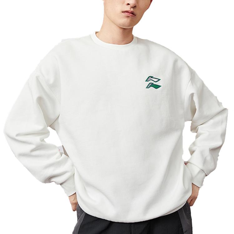 Li-Ning Мужская однотонная повседневная спортивная пуловер с круглым вырезом и длинными рукавами, мужская толстовка кремового цвета AWDQB71-1