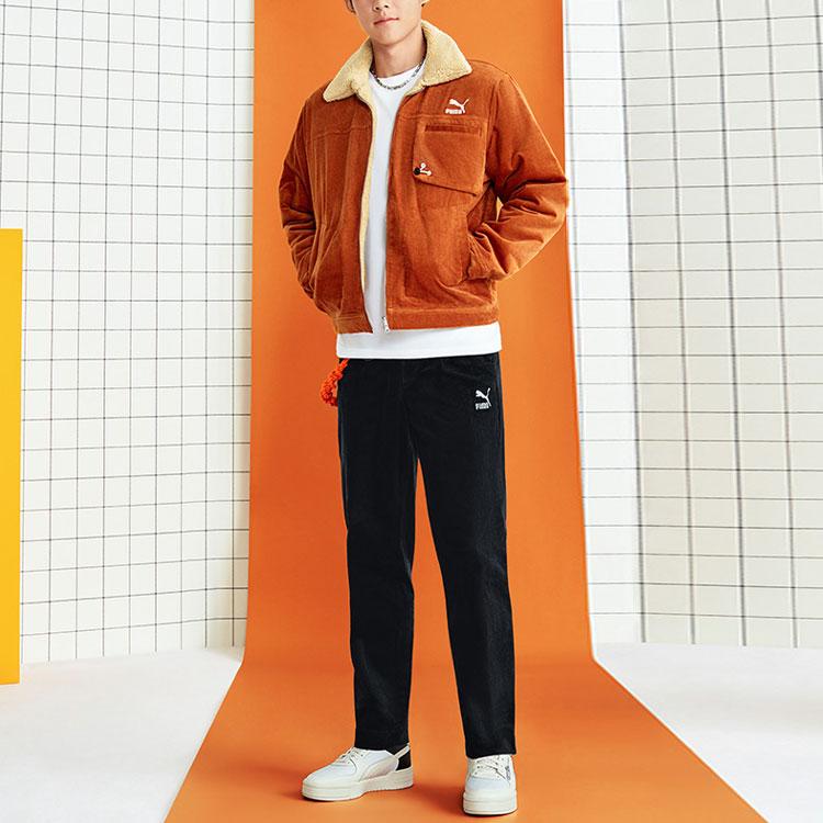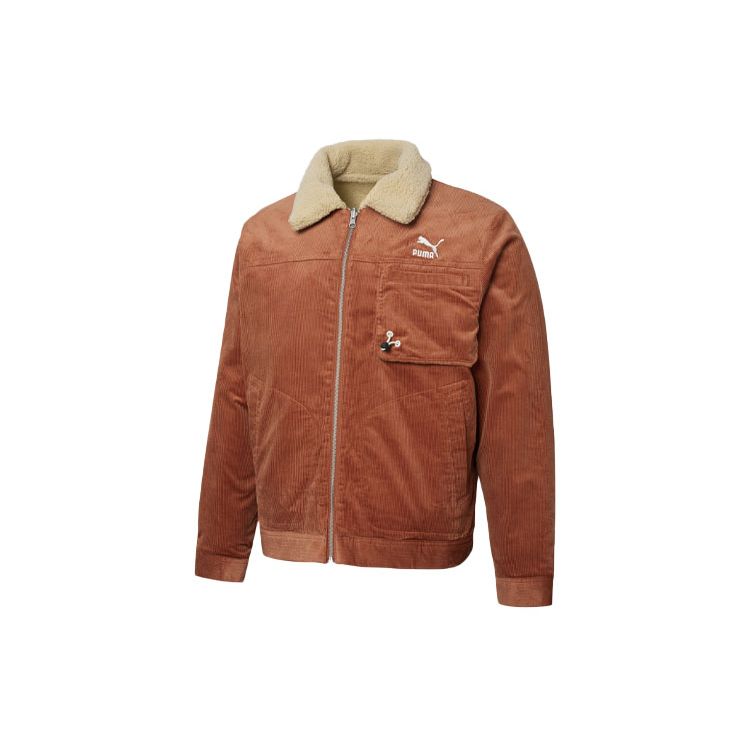 Puma Двусторонняя плюшевая вельветовая куртка с вышитым логотипом Мужские куртки Коричневые 534751-17