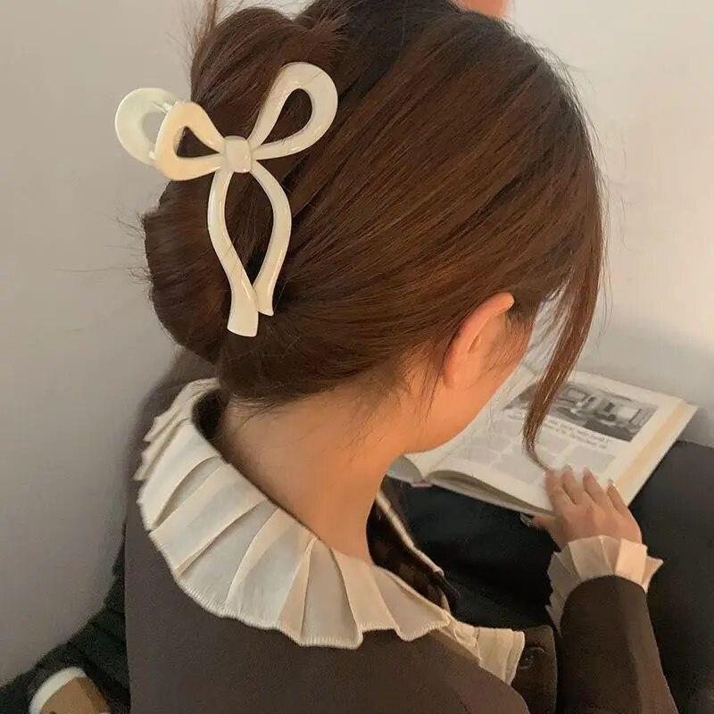 AWAYTR бант с хвостиком, большой коготь, аксессуары для волос в форме краба для женщин, однотонные акриловые заколки с бантом, заколки для волос, заколки для девочек