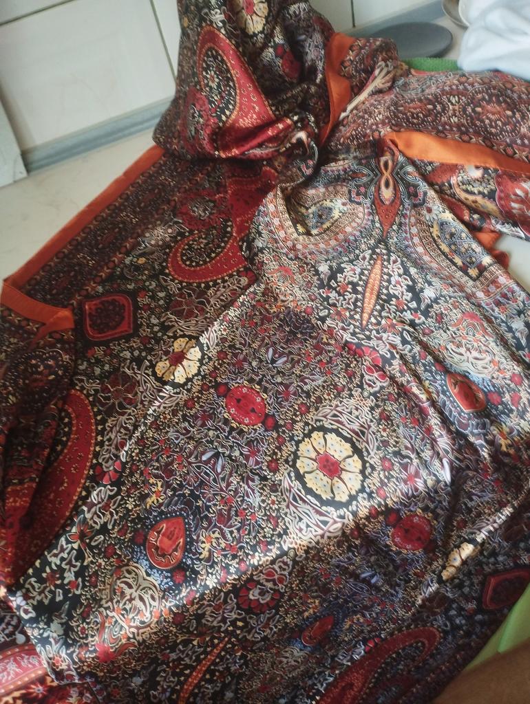 Красивый большой шарф. Думала оранжевый цвет будет ярким, но он более приглушенный, темно оранжевый, но от этого не менее красивый! Ткань приятная, шелковистая. Брала по отзыву Оленьки Александровой.