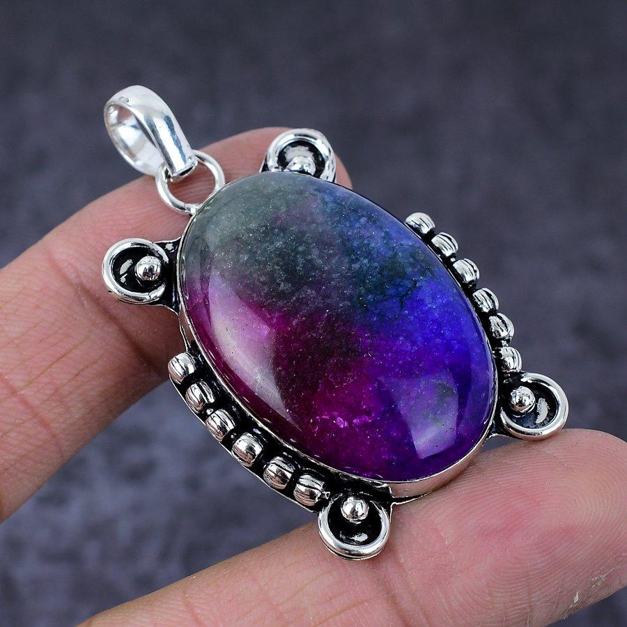 Подвеска из стерлингового серебра 925 пробы с натуральным радужным солнечным кварцем 2,05 дюйма