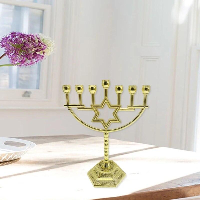 Подсвечник металлический держатель 7 ветвей подставка шестиугольная звезда традиционные канделябры украшение меноры