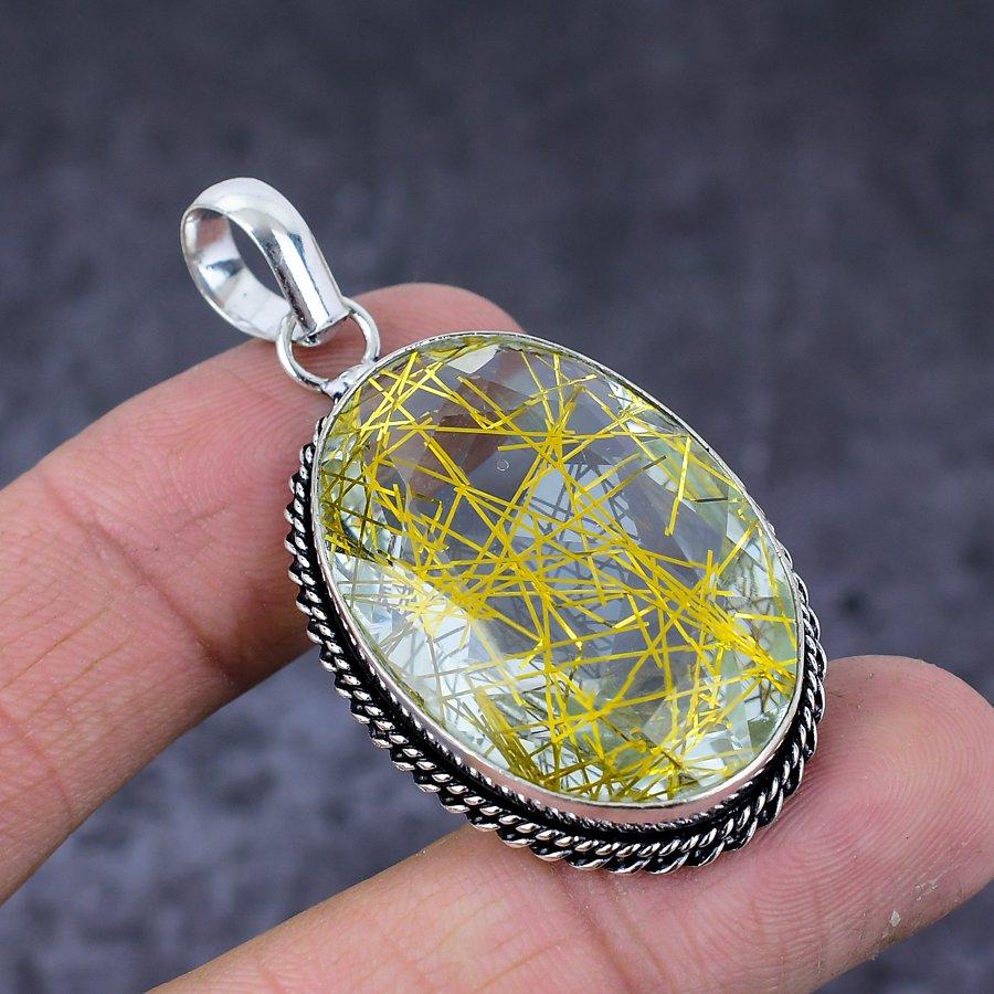 Подвеска ручной работы из стерлингового серебра 925 пробы с натуральным золотым рутилом 2,01 дюйма
