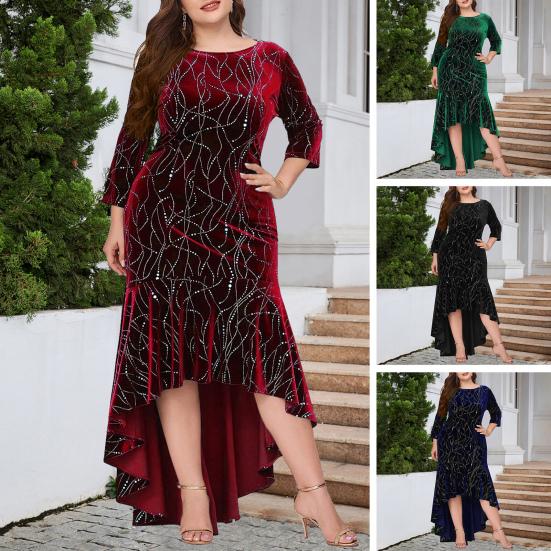 Рукав четверть, нерегулярный подол, круглая шея, большие размеры, приталенный крой, высокая талия, махровый хвост, элегантное платье макси для выпускного вечера — купить товар онлайн с бесплатной доставкой по всему миру!