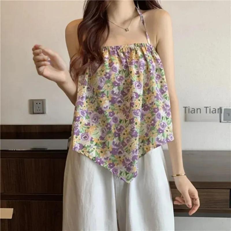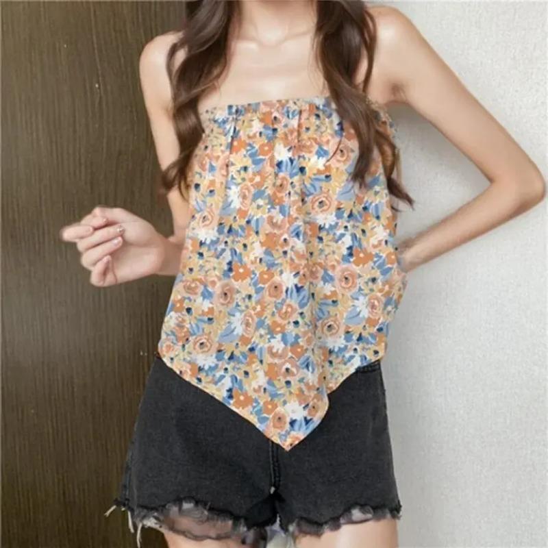 Свободный летний стильный жилет с небольшим ремешком, женская внутренняя одежда с цветочным дизайном, модная верхняя одежда в стиле ретро, длина полиэфирной ткани