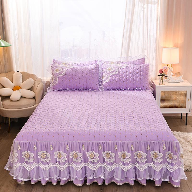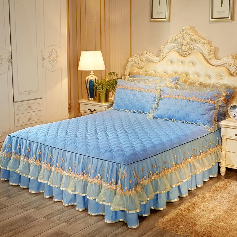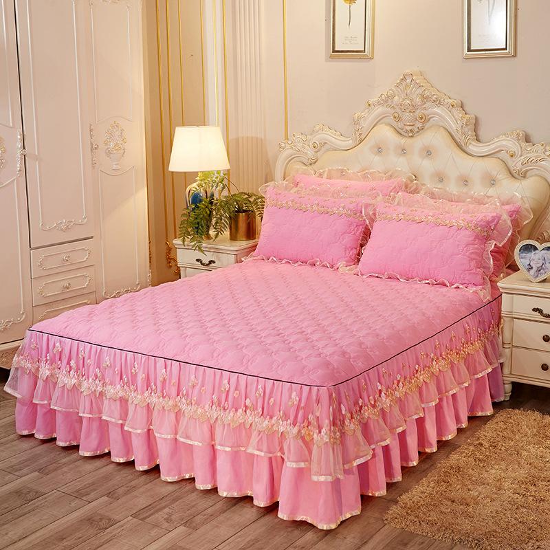 Юбка-кровать из кружевной пряжи, кружевное утолщенное стеганое покрывало с начесом, защитный чехол для матраса, постельные принадлежности