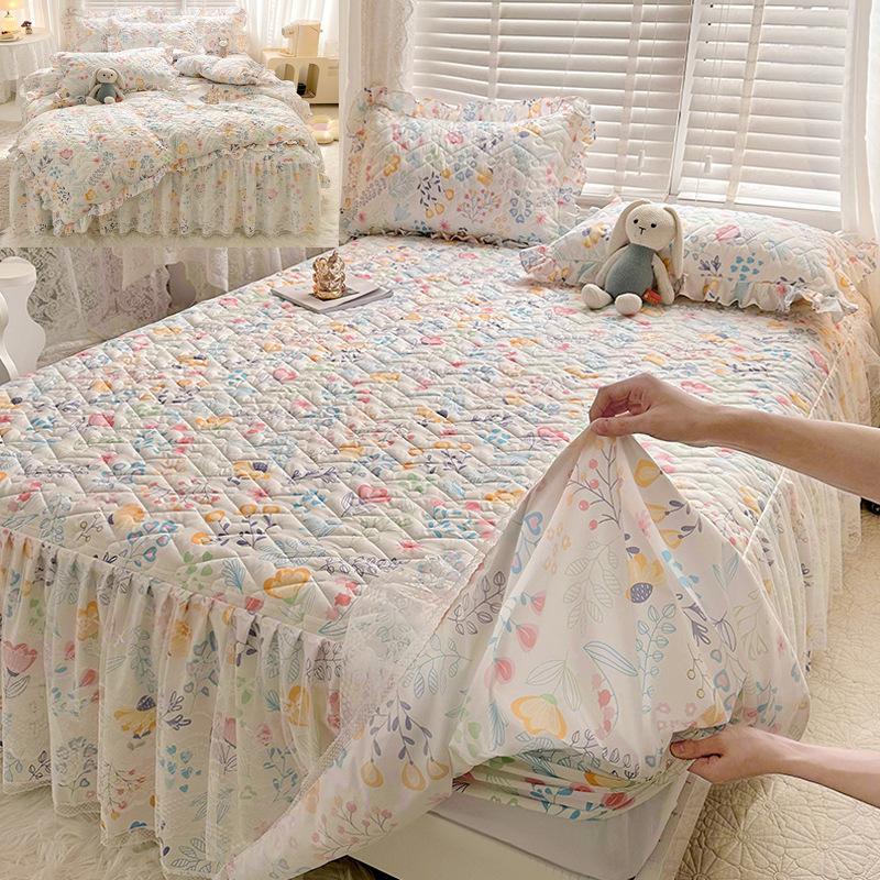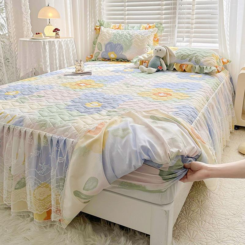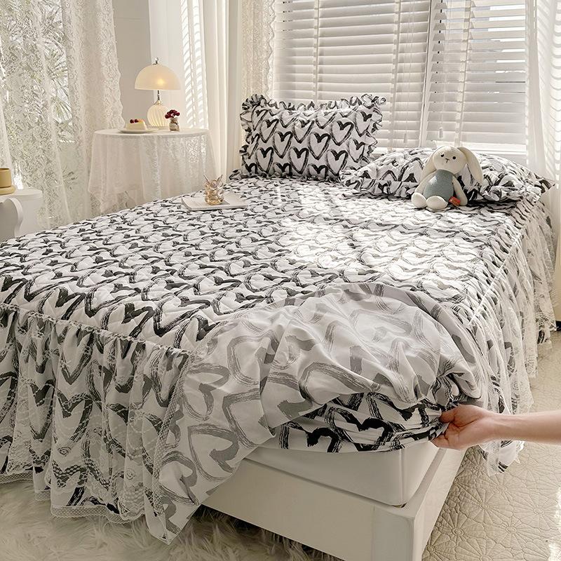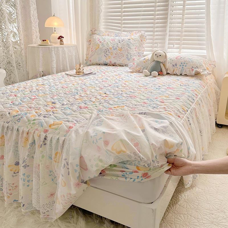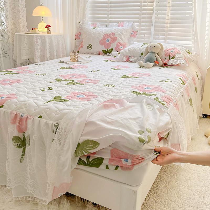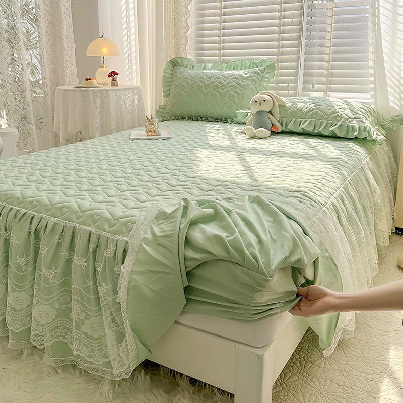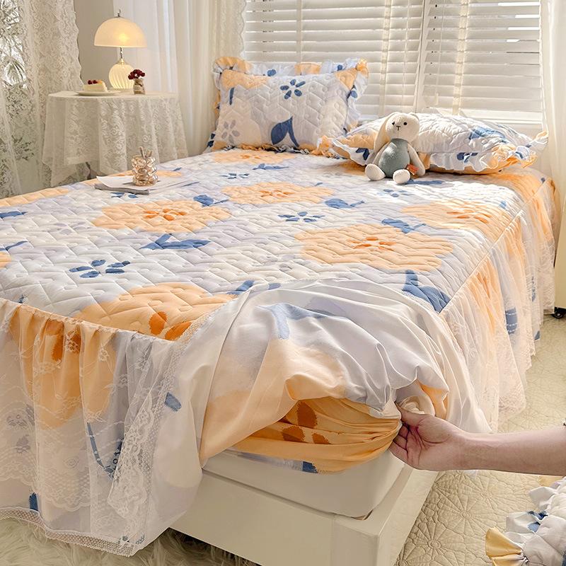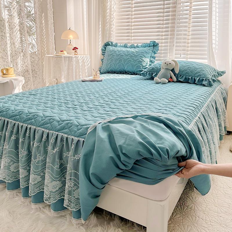 Приятная для кожи стеганая простыня «два в одном» Юбка-кровать Кружевное нескользящее покрывало Наматрасник