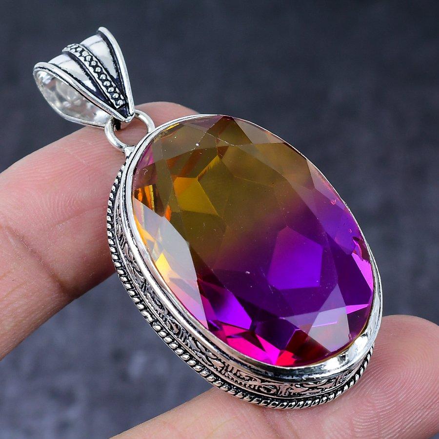 Подарочный кулон ручной работы из стерлингового серебра 925 пробы с натуральным двухцветным турмалином 2,29 дюйма