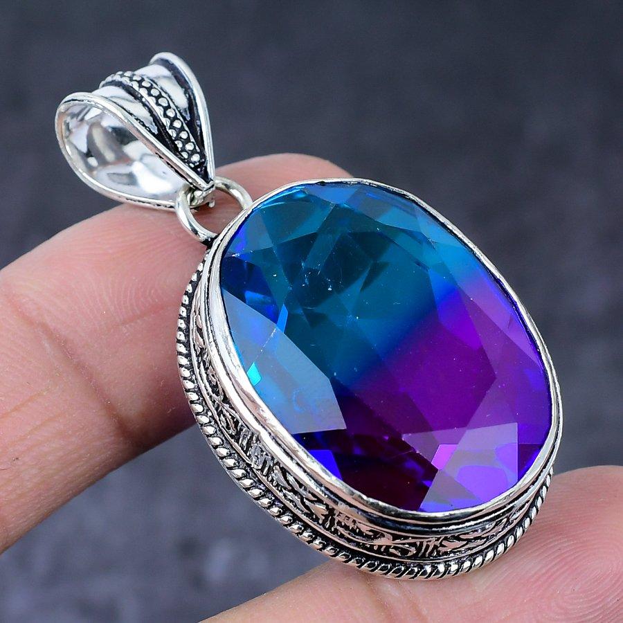 Подарочный кулон ручной работы с натуральным двухцветным турмалином из стерлингового серебра 925 пробы 1,97 дюйма