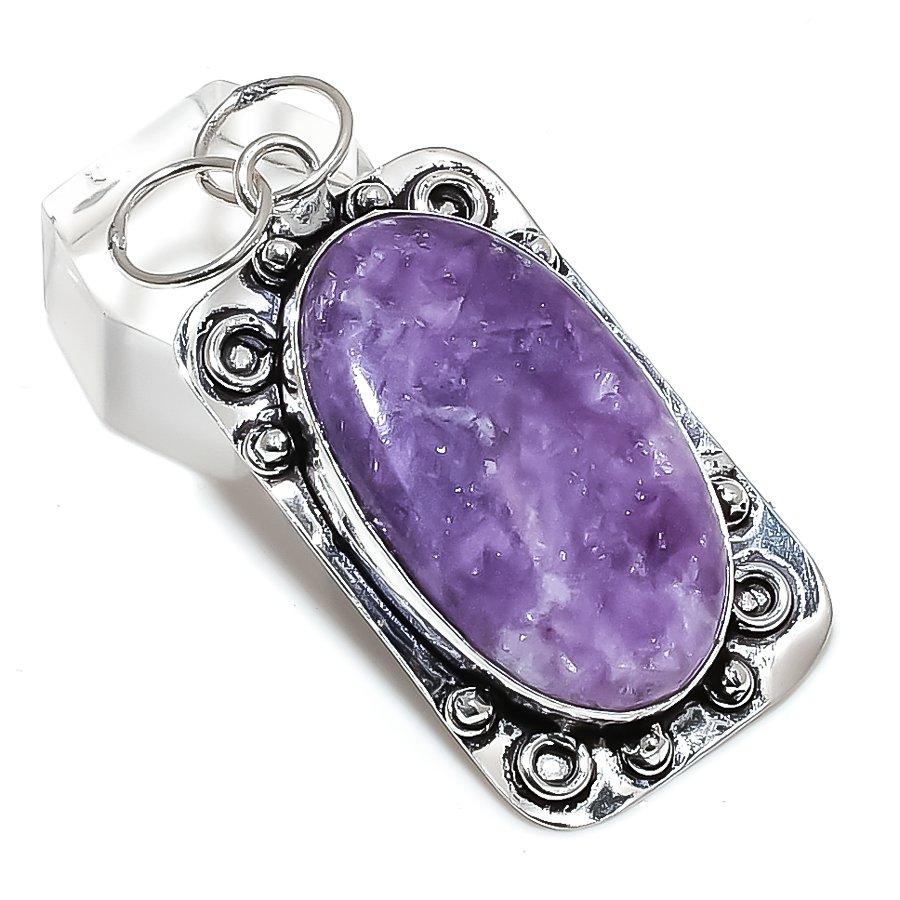 Ювелирный кулон ручной работы из стерлингового серебра 925 пробы с натуральным камнем лепидолит 2,17 дюйма o5M33